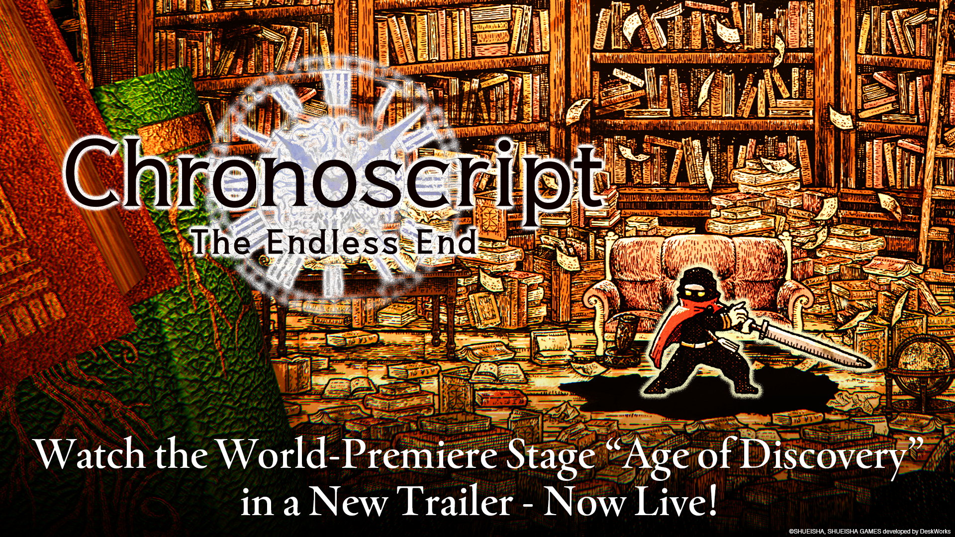SHUEISHA GAMES Co., Ltd. heeft vandaag een nieuwe trailer uitgebracht voor Chronoscript: The Endless End, een verkenningsgerichte action-adventuregame ontwikkeld door DeskWorks Inc. De trailer introduceert de “Age of Discovery”-fase en biedt een nieuwe blik op omgevingen en eindbazen.