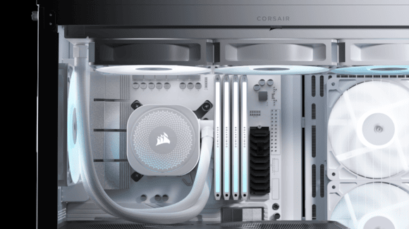 Standaard wordt de Frame 4500X geleverd met drie reverse-rotor RGB intake fans (RS120-R of iCUE LINK LX120-R, afhankelijk van de versie). Deze ventilatoren zorgen voor efficiënte en stille koeling terwijl de rgb-verlichting volledig zichtbaar blijft. De LX120-R maakt gebruik van iCUE LINK-technologie, waardoor je met één kabel zowel verlichting als snelheid kunt regelen. In totaal ondersteunt de case tot tien 120mm fans of vijf 140mm fans, inclusief extra mounts voor directe gpu-koeling.
